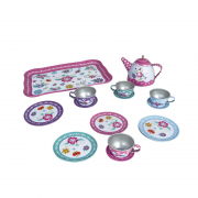 Contenido: Incluye tazas, platitos, platos, una tetera y otros accesorios para la merienda. Material: Está fabricado en metal liviano para mayor durabilidad y realismo. Uso: Diseñado para juegos de rol e imitación, fomentando la imaginación y la cognición en niños.