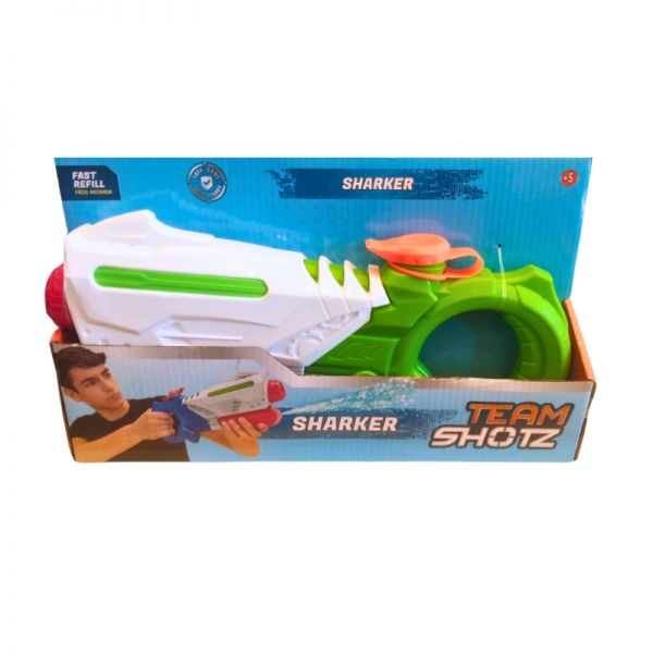 Pistola de agua estilo tiburon de facil recarga.